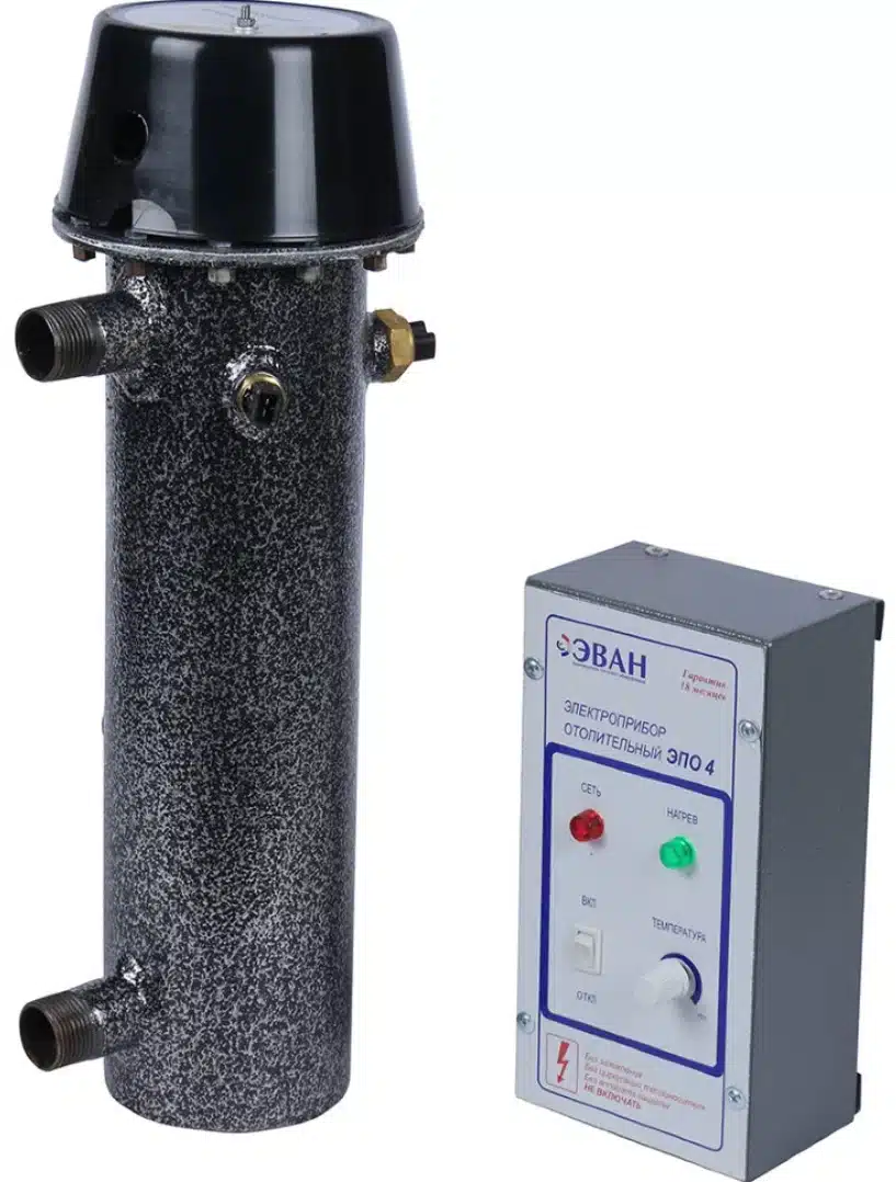 “Эван” производится в России. Его стандарт предназначен для отопления дач и складских помещений. В едином корпусе установлен термоноситель и встроенный термостат. Если вы подключаете котел на 220В, сечение должно равняться 6. На корпусе дисплея имеются 2 выключателя.