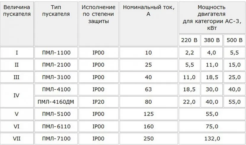 Характеристики и виды пускателей по характеристикам