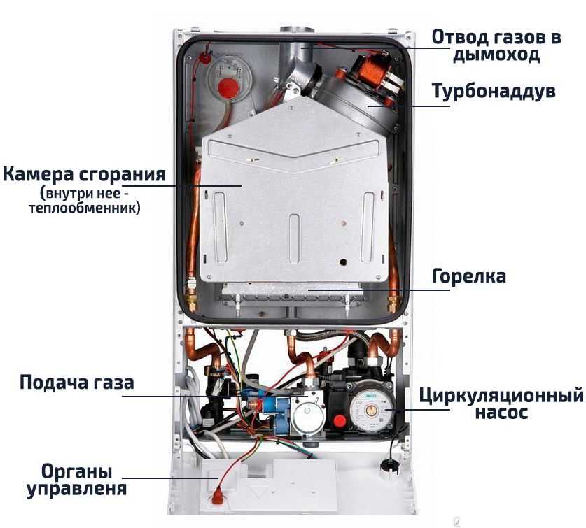 - автоматика (регулировка подачи газа, а также датчики тяги, давления газа, воды и пр.).