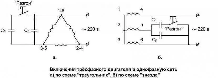 Подключение трёхфазного двигателя к однофазной сетиИсточник stroysvoy-dom.ru