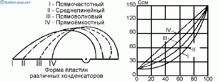 В радиолюбительских приёмниках раньше применялись прямоёмкостные конденсаторы, которые впоследствии были заменены прямочастотными и прямоволновыми конденсаторами, дававшими возможность более равномерно распределить по шкале настройку на станции.