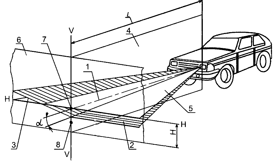 Вот эти требования к регулировке фар:3.8.4. Угол наклона плоскости (рисунок 3.1), содержащей левую (от транспортного средства) часть верхней светотеневой границы пучка, именуемый углом регулировки ближнего света фар типов C, HC, DC, CR, HCR, DCR, должен быть в пределах 0,2% в вертикальном направлении от нормативного значения угла регулировки, указанного в эксплуатационной документации и (или) обозначенного на транспортном средстве. При отсутствии на транспортном средстве и в эксплуатационной документации данных о нормативном значении угла регулировки, фары типов C, HC, DC, CR, HCR, DCR должны быть отрегулированы в соответствии с указанными значениями угла регулировки ближнего света фар на рисунке 3.1, а или б и в таблице 3.2. Нормативы угла регулировки заданы в зависимости от высоты H установки оптического центра фары над плоскостью рабочей площадки. Правый участок следа светотеневой границы пучка ближнего света фар типов C, HC, DC, CR, HCR, DCR на экране может быть наклонным или ломаным. 3.8.5. Угловое отклонение в горизонтальном направлении точки пересечения левого горизонтального и правого наклонного участков светотеневой границы светового пучка фар типов C, HC, DC, CR, HCR, DCR от вертикальной плоскости, проходящей через ось отсчета, должно быть не более 0,2%. 3.8.6. Сила света каждой из фар в режиме «ближний свет», измеренная в вертикальной плоскости, проходящей через ось отсчета, должна быть не более 750 кд в направлении 34′ вверх от положения левой части светотеневой границы и не менее 1600 кд в направлении 52′ вниз от положения левой части светотеневой границы. Проверку силы света фар в режиме «ближний свет» проводят после регулировки положения светового пучка ближнего света в соответствии с пунктом 3.8.4. При несоответствии силы ближнего света установленным нормативам проводят повторную регулировку в пределах 0,1% в вертикальном направлении от номинального значения угла по таблице 3.2 и повторное измерение силы света. 3.8.7. Максимальная сила света всех фар, которые могут быть включены одновременно в режиме «дальний свет», не должна превышать 300 000 кд. Силу света фар типов R, HR, DR измеряют в направлении оптической оси фары после проведения регулировки в соответствии с настоящим пунктом. Фары типов R, HR, DR должны быть отрегулированы так, чтобы центр светового пучка лежал на оси отсчета фары. N 29)