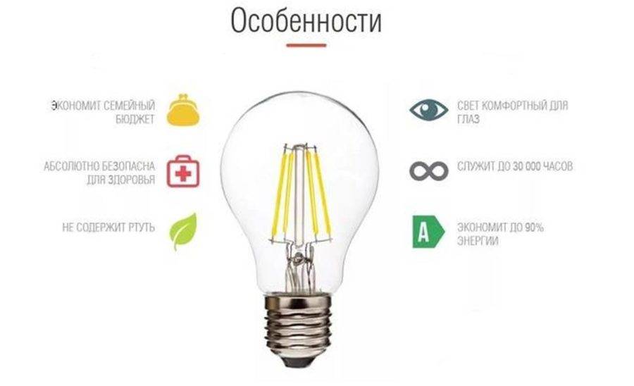 Достоинства использования филамнентного устройстваОбратите внимание! В лампе накаливания и светодиодных вариантах используются полупрозрачные колбы. Они забирают на себя часть света, из-за чего свет становится тусклее. Вам это будет интересно Особенности электронного балласта