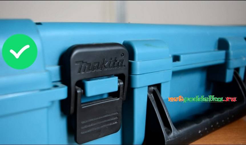 Цвет чемодана совпадает с цветом инструмента, защелки черные, для каждой детали предусмотрено определенное место. Если столкнулись с продавцом на базаре или в Интернете, который предлагает Макиту без кейса, сразу откажитесь. И не имеет значения, какие оправдания придумает. Кейс нужен обязательно.