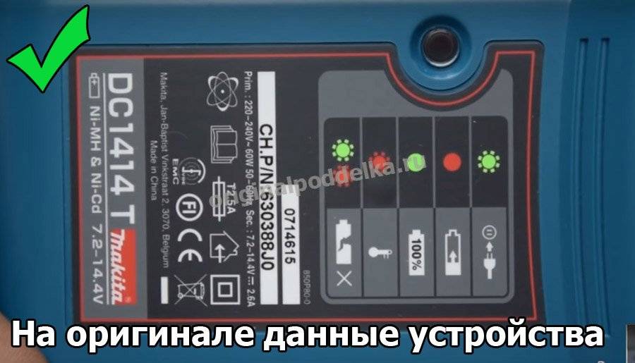 Зарядное устройство оригинала состоит из двух частей – блока управления и блока зарядки. Для подделки применяется другой тип зарядного устройства, совмешающий блок зарядки с платой управления.