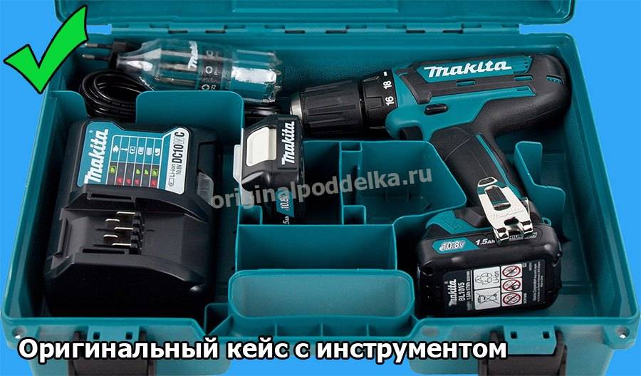 Основной признак любого фирменного изделия – это качество изготовления. Для шуруповертов и перфораторов японского бренда характерно отсутствие дефектов и изъянов, применение качественного пластика без неприятного химического запаха. Корпус инструмента и кейс имеют определенный зеленоватый оттенок. Все надписи выполнены методом литья. Фирменный шрифт Макита подразумевает ровные буквы одного размера с отсутствием разрывов между ними.