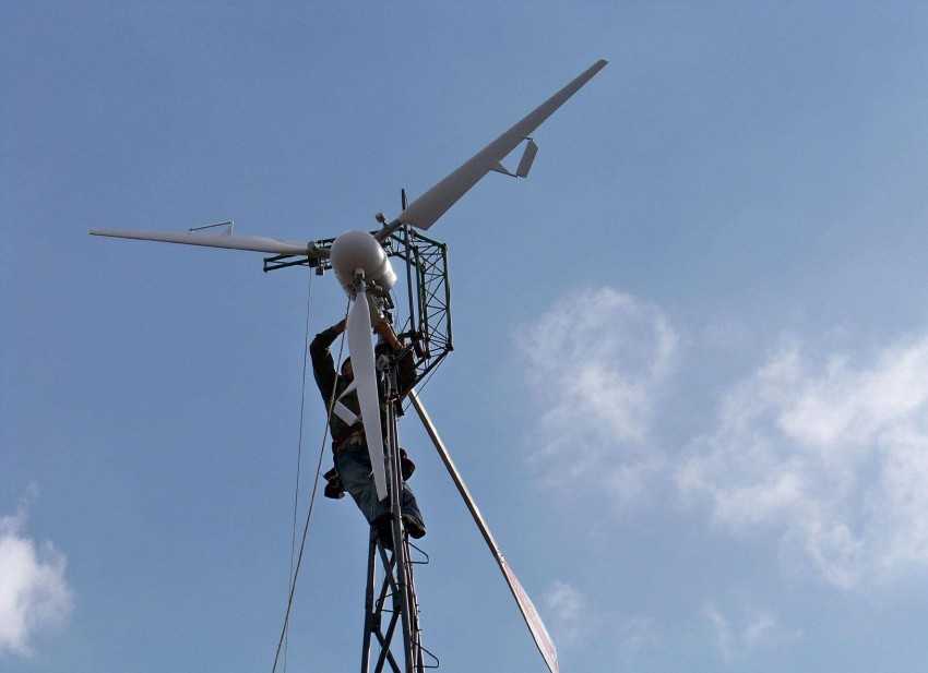 - Ветрогенератора. В качестве движителя, необходимого для пуска двигателя, используется ветряк, который вращается под воздействием ветра;