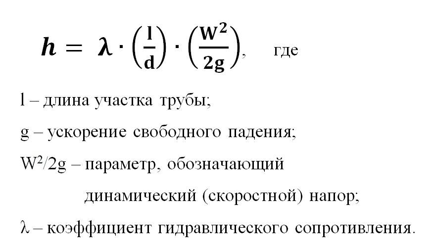 В расчётах используются и другие уравнения приблизительного расчета потерь напора на трение. Одним из наиболее удобных и часто используемых в этом случае считается формула Дарси-Вейсбаха. Потери напора на трение рассматриваются как функция скорости жидкости от сопротивления трубы движению жидкости, выражаемой через значение шероховатости поверхности стенок трубы: