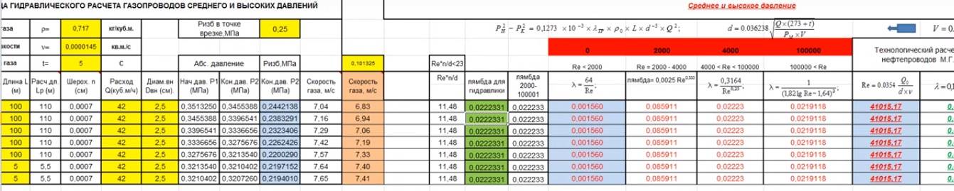 С помощью одной программы можно делать расчеты для всех видов газопроводов. На картинке исчисления для сети среднего давления