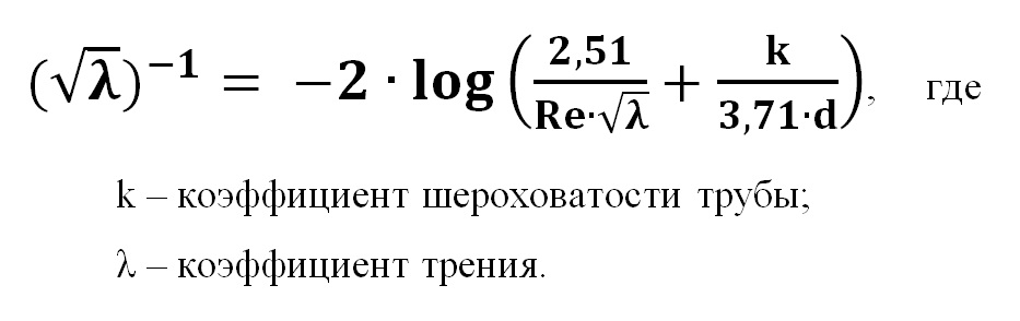 Для вычисления коэффициента трения турбулентного движения потока также используется уравнение Коулбрука-Уайта, с использованием которого возможно наглядное построение графических зависимостей, по которым определяется коэффициент трения: