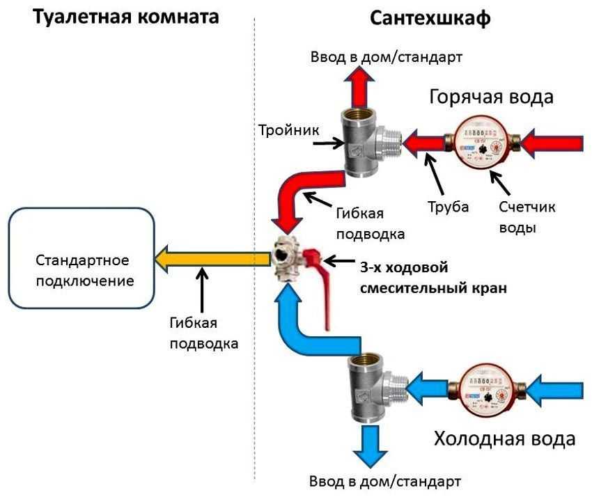 Уточняют схему подключения лейки для гигиенического душа к магистралям холодного и горячего водоснабжения