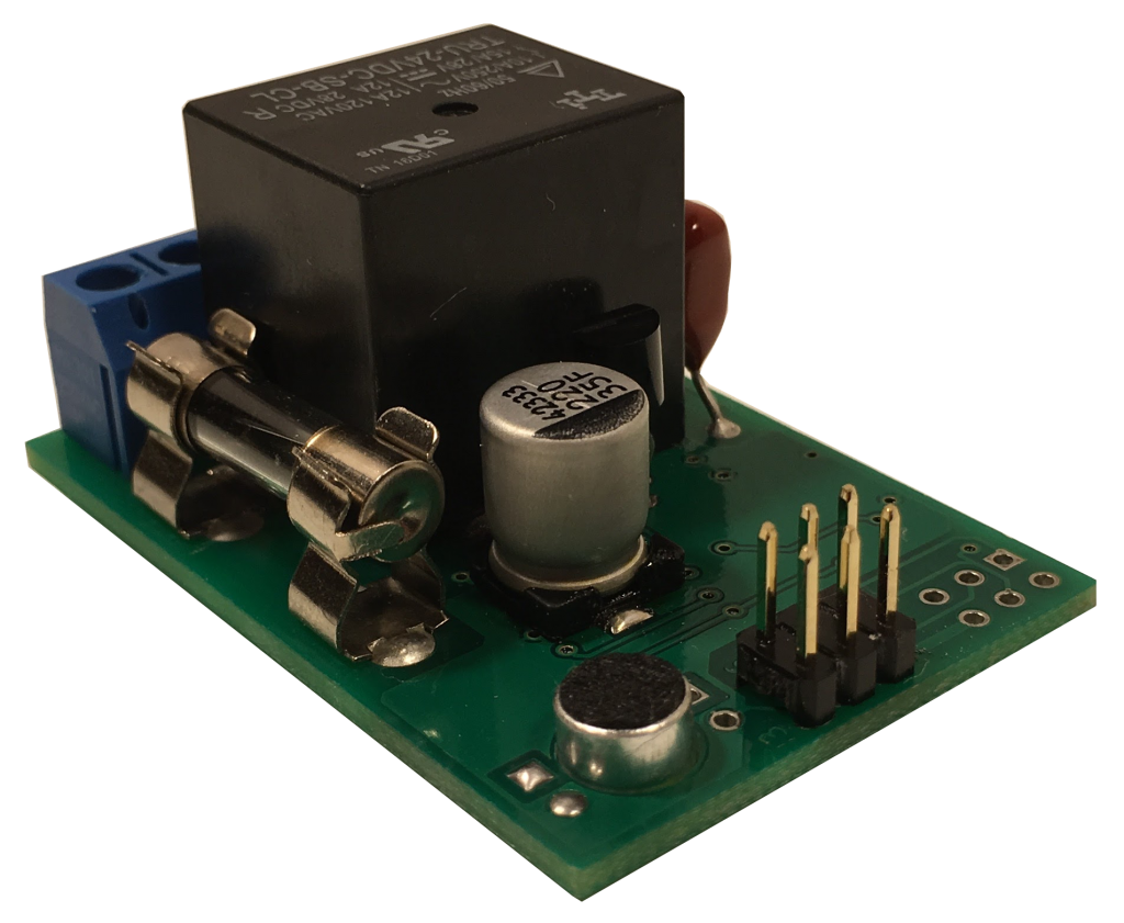 - Стандартное изделие. Подключается в простую схему электрической цепи параллельно с выключателем света прибора и настраивается на нужный звуковой диапазон.