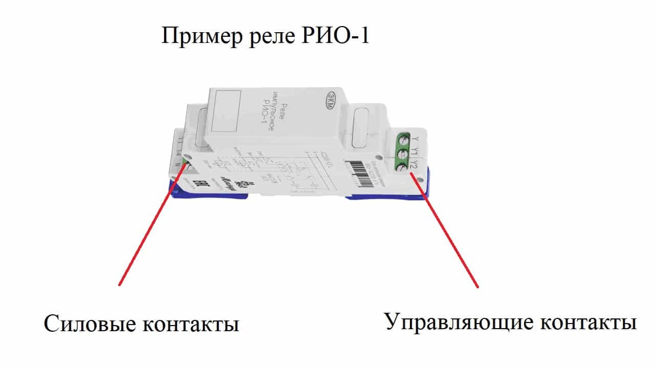 Так как каждый производитель маркирует вывода импульсного реле по-разному, то в качестве образца мы возьмем наиболее распространенную модель РИО-1.