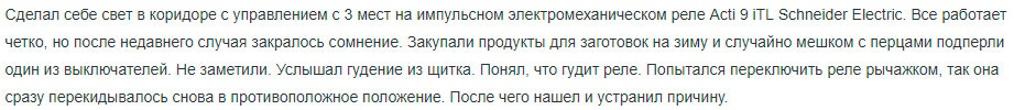 Стоит отметить, что у того же Schneider Electric существуют отдельные реле, которые позволяют реализовать дистанционное управление с помощью смартфона и наличия сети Wi-Fi в квартире. Отправляясь в путешествие, Вы уже не будете беспокоиться насчет выключенного света, утюга или печки. Грамотно выполнив схему питания освещения и розеток с помощью импульсных реле, Вы всегда сможете обесточить нужные нагрузки дистанционно.
