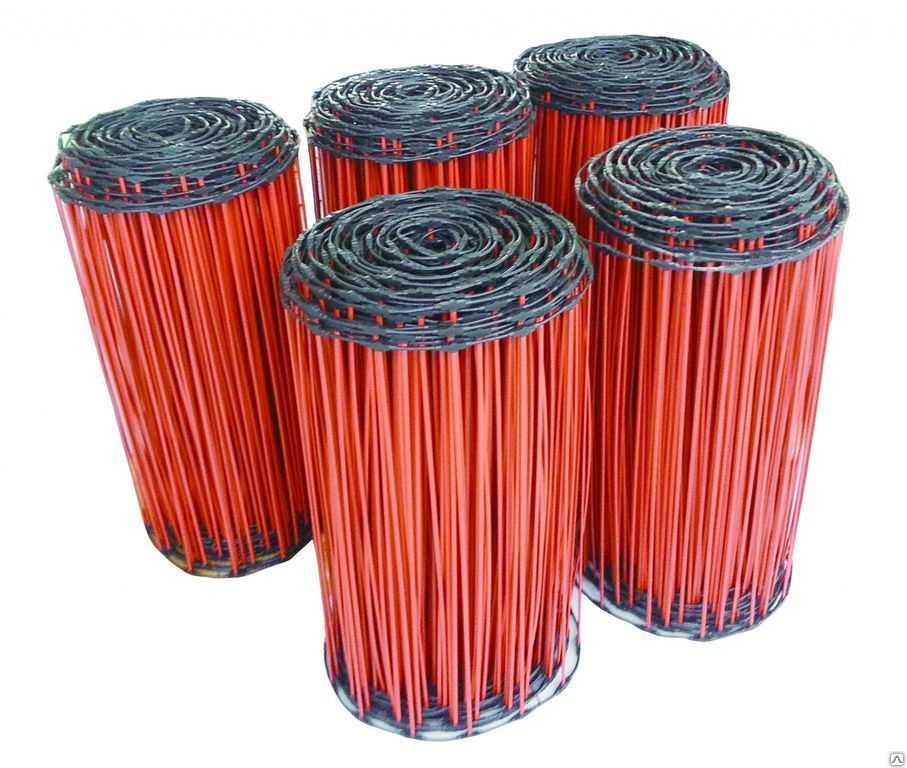 Стержневые тоже рулонный материал. Но у этого типа греющих элементов нет никакой подложки. Сами стержни упругие, а расположенные по бокам токоведущие провода, к которым эти стержни крепятся, придают жесткость конструкции.