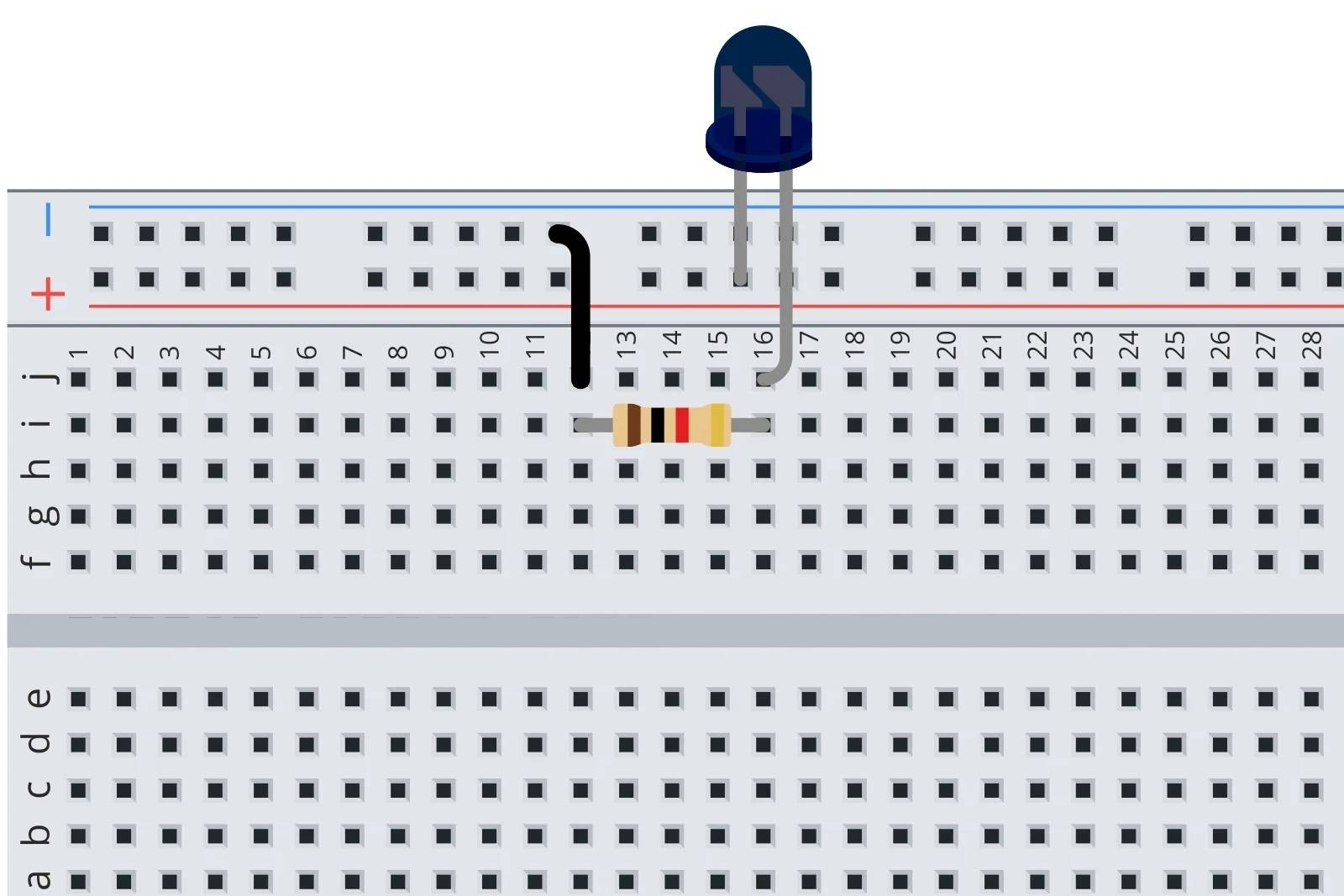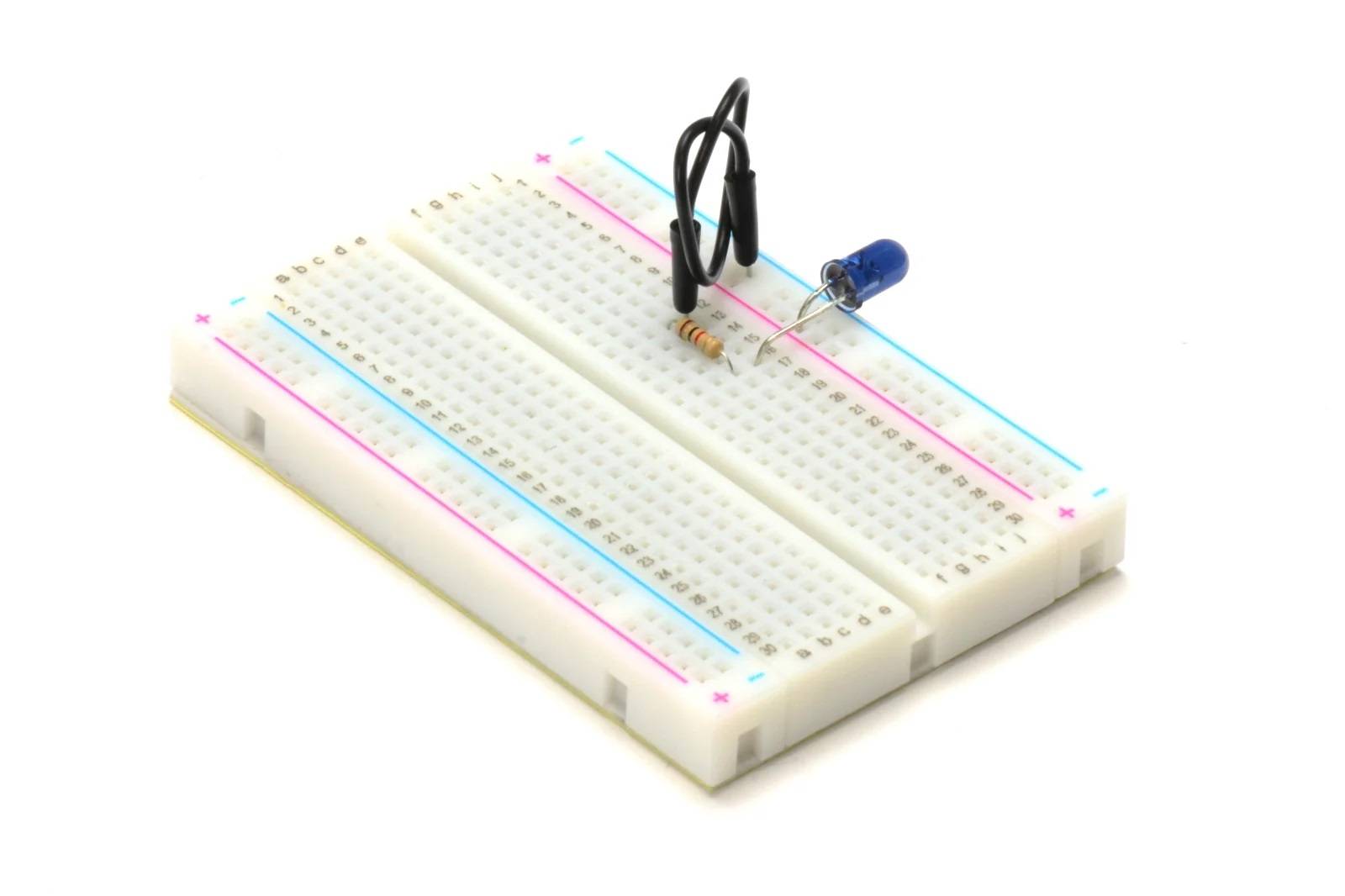 Если схема правильно собрана, то после включения питания… ничего не произойдет. То есть, диод будет светить, но невооруженным глазом мы этого не увидим. Однако мы можем видеть, что диод горит, когда мы посмотрим на него, например, используя цифровую камеру на телефоне или веб-камеру, встроенную в ноутбук.