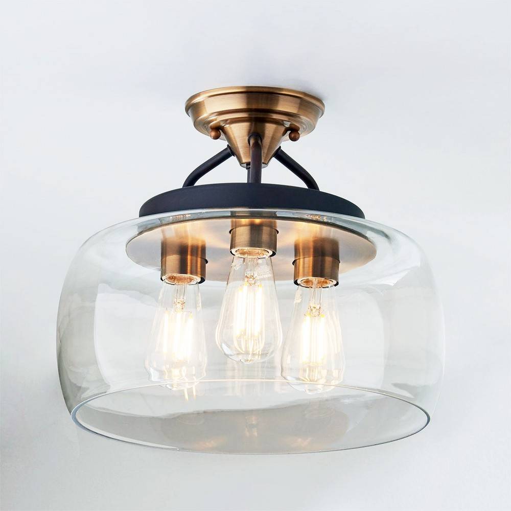 Отсутствие натяжного потолка приводит к невозможности установки встраиваемых светильников, поэтому придется обратить внимание на накладные устройства, люстры с плоской формой, трековые изделия и светодиодные панели