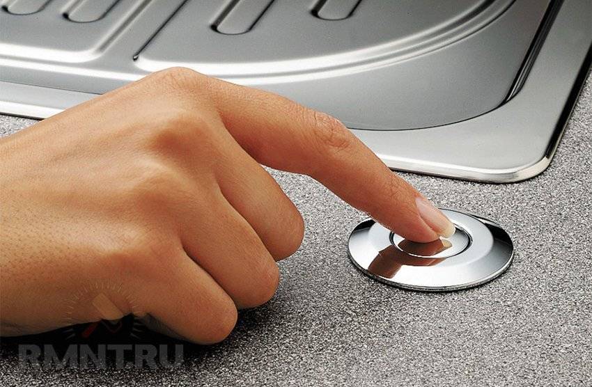 Кнопка включения в диспоузерах также безопасна, не имеет электрических контактов, поэтому касаться ее можно даже мокрыми руками. Вы нажимаете на поршень, который создает давление воздуха в трубке, протянутой до включателя в корпусе двигателя. Усилие для нажатия достаточно велико, маленькие дети включить измельчитель не смогут.