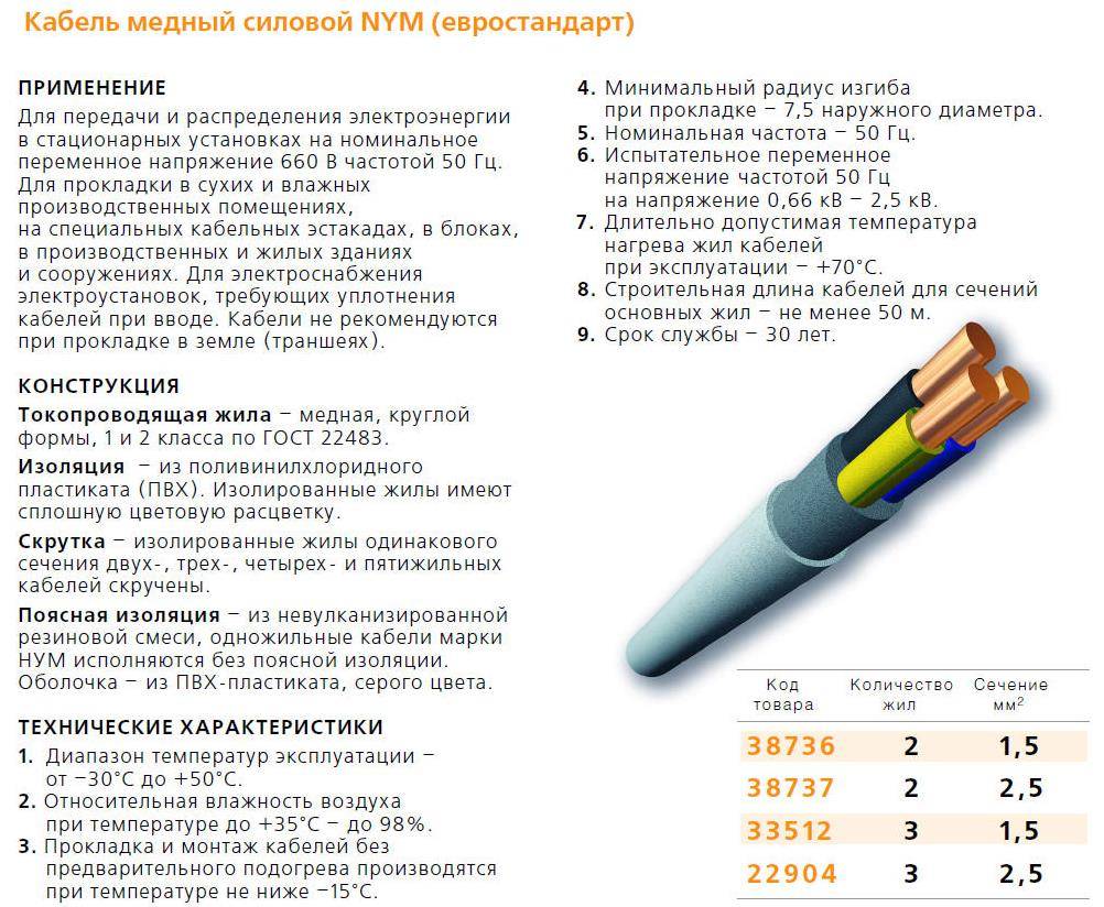 Силовой кабель NYM (НЮМ): описание, применение, характеристики
