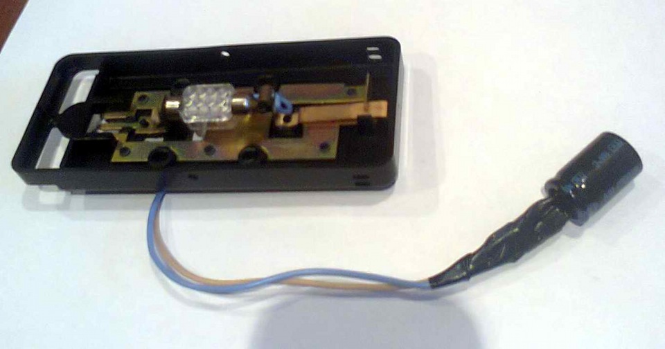 Устанавливаем плафон на место, предварительно спрятав конденсатор с проводами в пространство за декоративным потолком.Вот и все! Теперь свет в салоне тухнет плавно, примерно за 5 секунд )))
