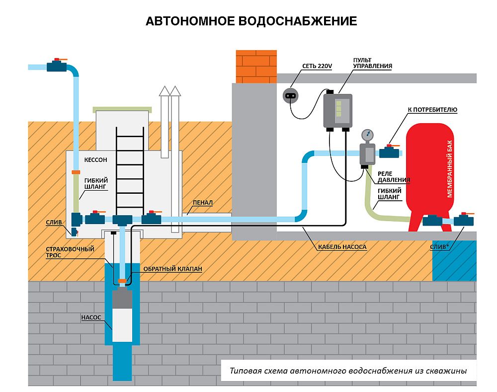Система автономного водоснабжения дома состоит из трех главных частей: