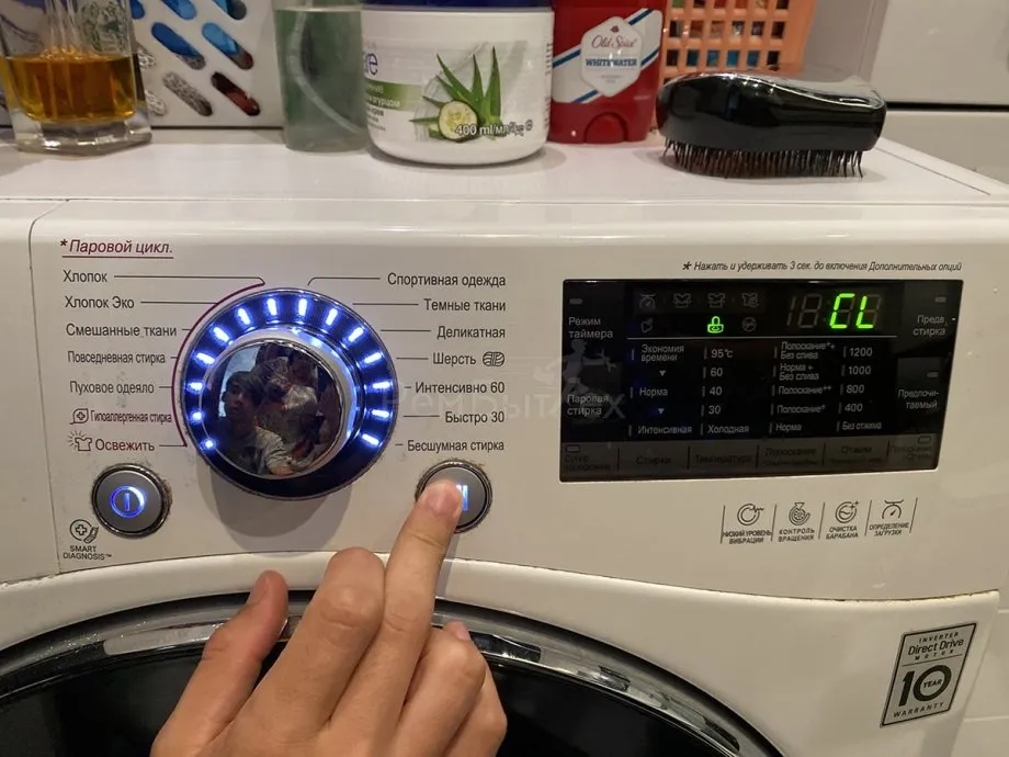 В стиральной машине марки LG Direct Drive (Лджи) разблокировка возможна снятием «Замка от детей». Для сброса и установки одновременно активируют режимы «Предварительная стирка» и «Супер полоскание». Нажав кнопку «Пуск/Пауза», цикл продолжают.