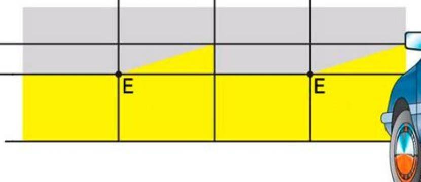 - При расположении автомобиля в 5 м от поверхности с разметкой, верхняя граница пучка света должна находиться на 10 см ниже высоты от уровня горизонтальной площадки. Противотуманная оптика должна устанавливаться параллельно продольной оси машины.