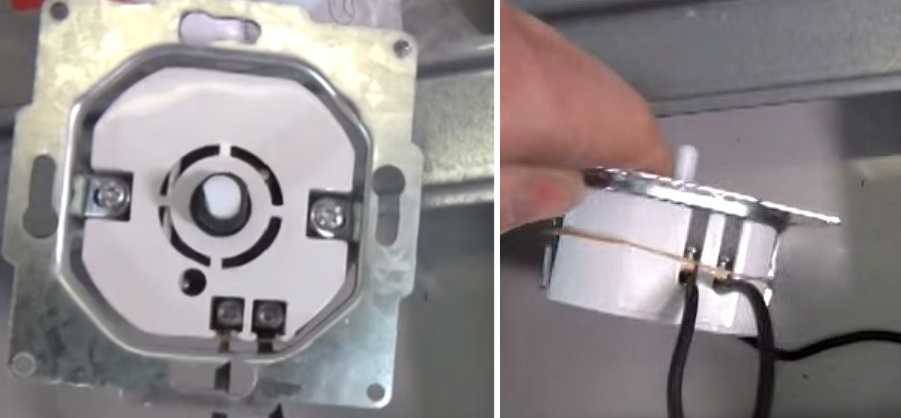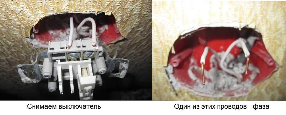 В первую очередь выключаем электрическую цепь вводным или групповым автоматом и проверяем отсутствие фазы исправным индикатором. Далее снимаем декоративную крышку, ослабляя винты крепления лапок, и вытаскиваем выключатель. Откручиваем провода от выключателя и разводим их стороны.