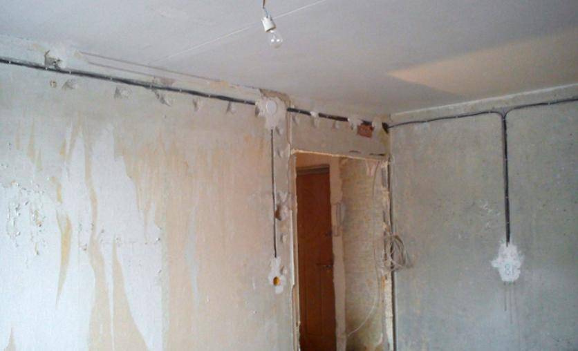 Если выбрана скрытая проводка, то, после определения мест установки электроприборов, в стенах надо выполнить каналы (штробы) для укладки кабеля и выемки для установки пластиковых боксов. После прокладки проводниковой продукции и вывода проводов в распредкоробки и подрозетники, штробы заштукатуриваются и выполняются работы по обустройству интерьера.