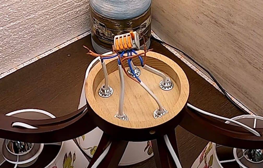 - Нулевой провод люстры подключить к нулевому проводу на потолке.