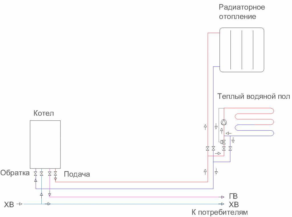 Все представленные выше схемы работают стабильно. Как вы заметили, все отводы идут прямо, без изгибов в виде дуги или колец. Это не случайно — во всех неровностях скапливается воздух, Который мешает, а порой, и полностью перекрывает циркуляцию.