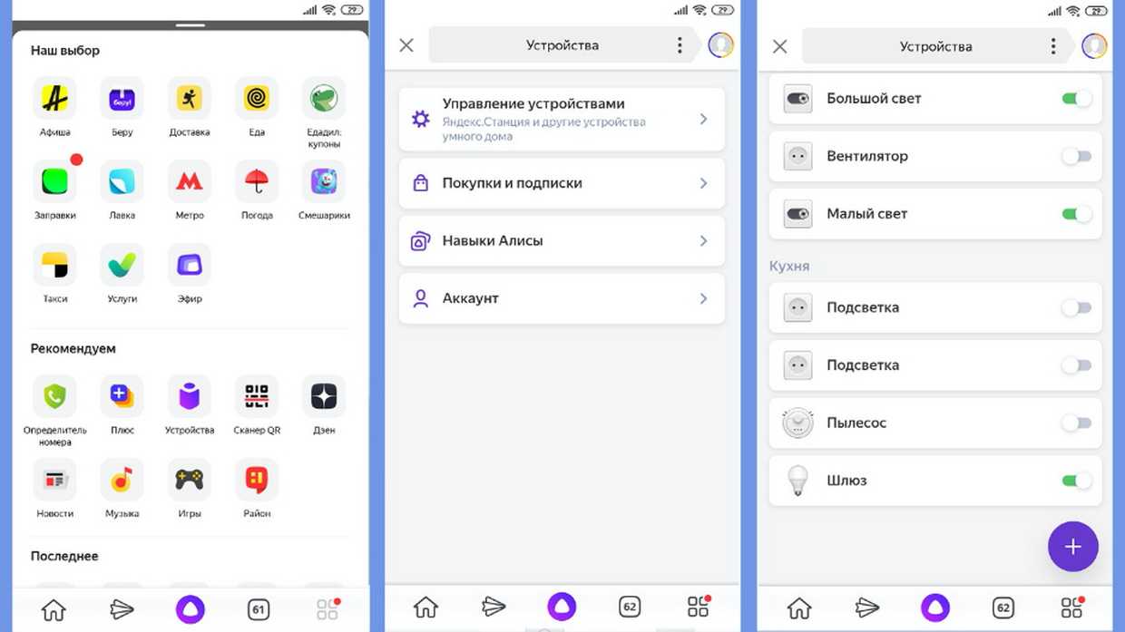 Управлять можно как голосовыми командами, так и с помощью «визуальных пультов» на странице устройства в рамках списка реализованных команд. Не густо. Зато российские помощники работают с любых устройств, на которых можно запустить веб-версию помощника.