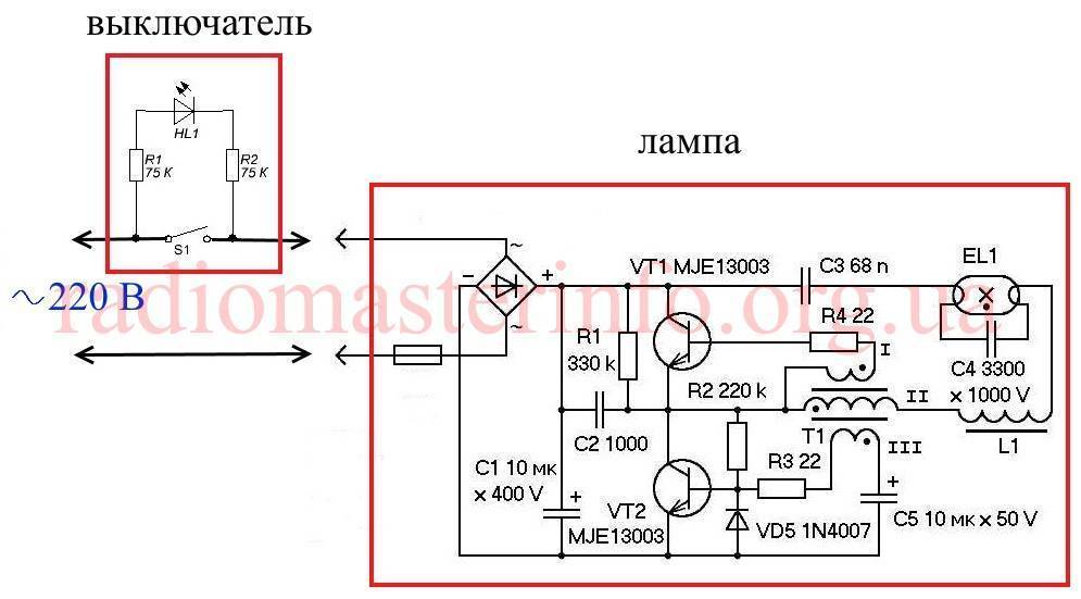 Схема подсветки с диодом и с неоновой лампой