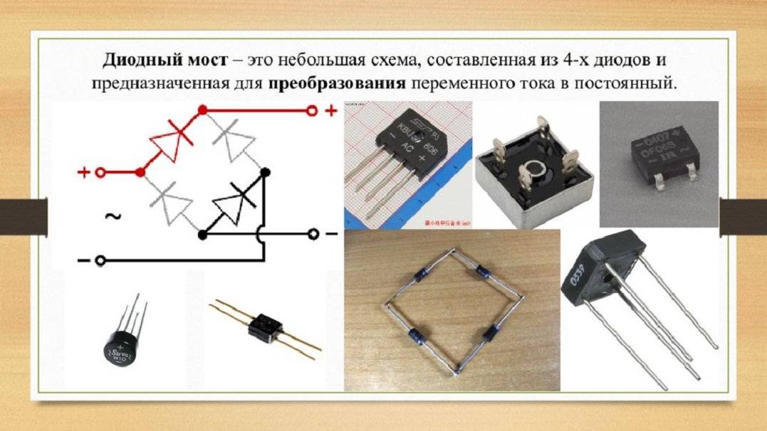 Для начала мы рассмотрим, какими бывают и что внутри диодного моста. Встречаются данные элементы схемы в двух исполнениях: