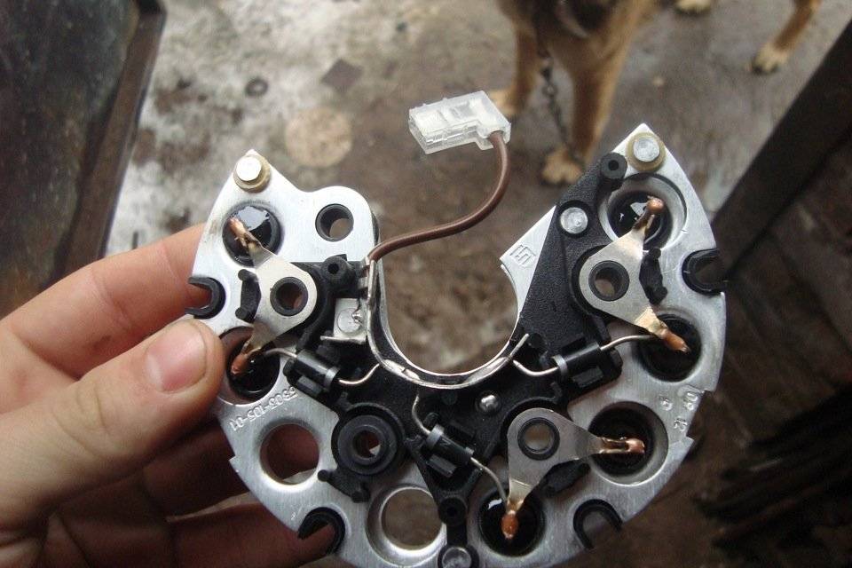При пробое кремниевого перехода или полноценного диода в корпусе требуется замена диодного моста генератора или отдельных полупроводников, входящих в его состав.