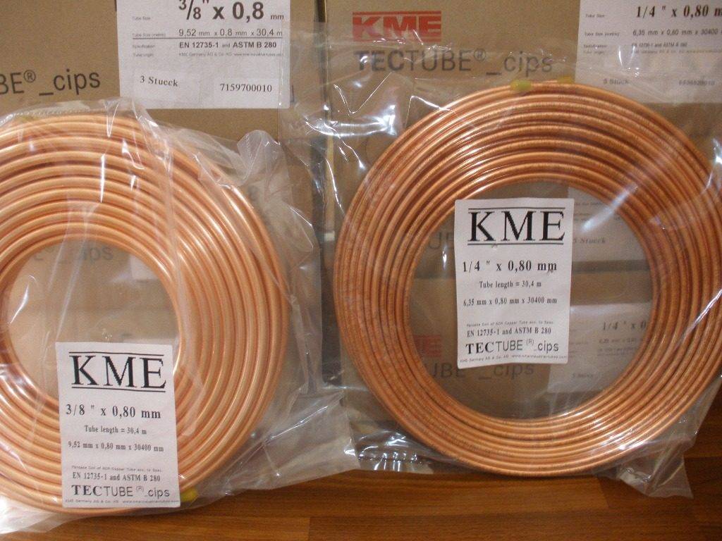 В целях безопасности лучшим решением будет приобрести целую бухту медной трубки. Это оправдано, так как в обрезанной трубке может остаться мелкая стружка, которая в процессе работы способна вывести компрессор из строя. Кроме того, необходимо проследить, чтобы на краях трубки был заводская развальцовка, и на трубке отсутствовали трещины, заломы и прочие дефекты. С помощью длинного трубопровода можно опустить внешний блок намного ниже внутреннего. В данном случае перерасход материала быстро окупится, так как возникший эффект термосифона снизит затраты энергопотребления оборудования.