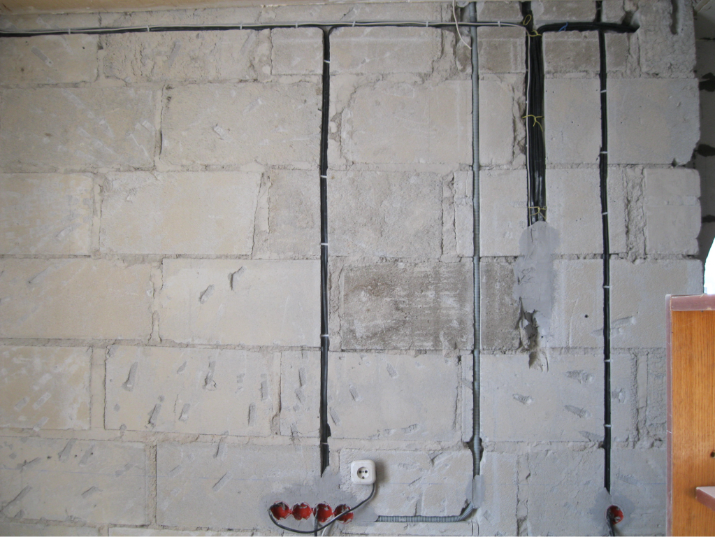 - Кирпичные стены легче поддаются штроблению, нежели бетонные. Это нужно учитывать при выборе инструмента и наличии соответствующих навыков.