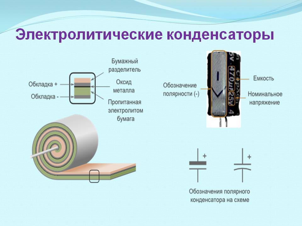 Электролитический конденсатор — это мини-аккумулятор, в нем содержится электролит, и подключается он только с соблюдением полярности.