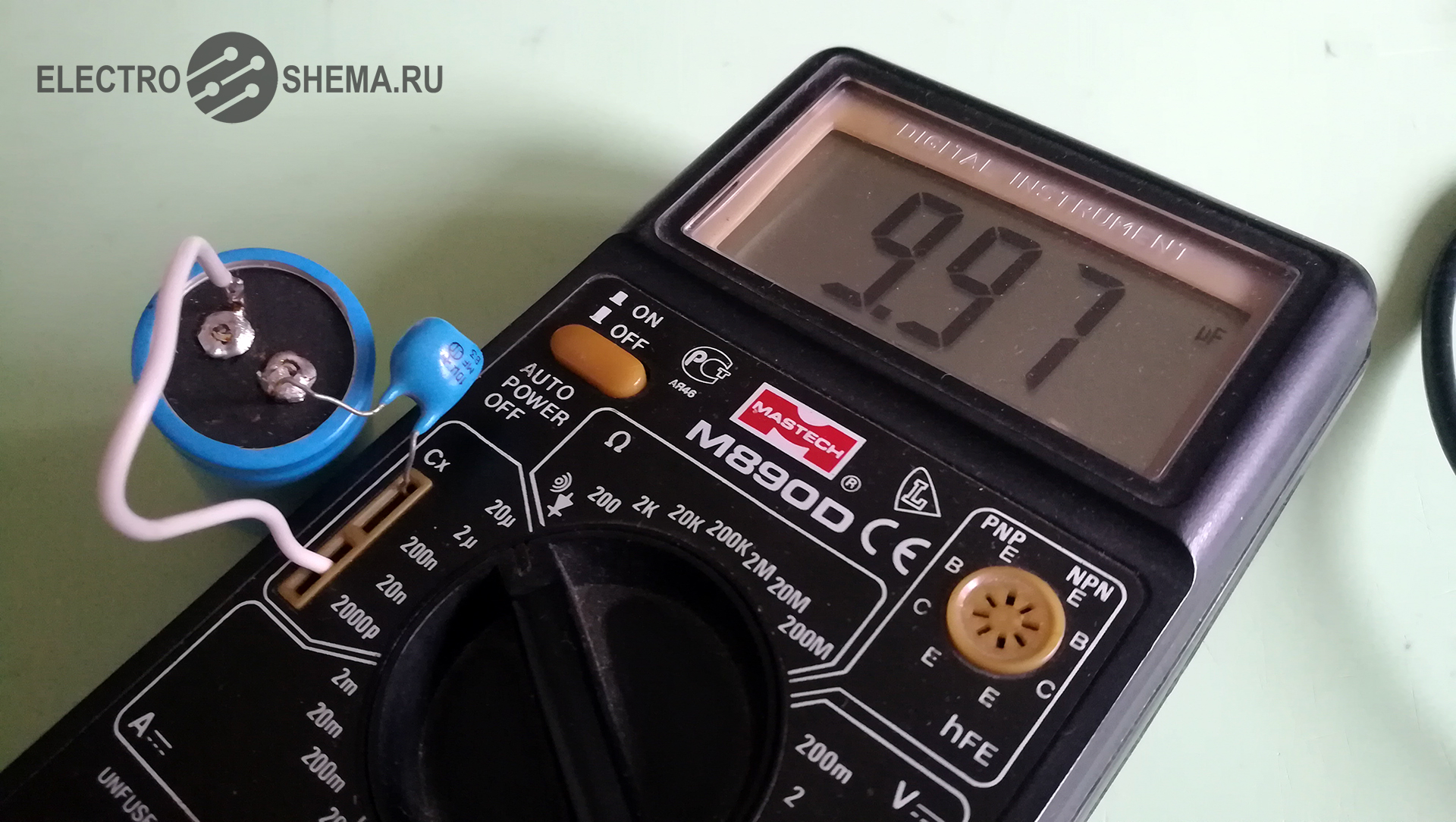 Таким образом, если предел измерения нашего мультиметра 20 мкФ, то неизвестный конденсатор нужно последовательно с конденсатором не более 20 мкФ.