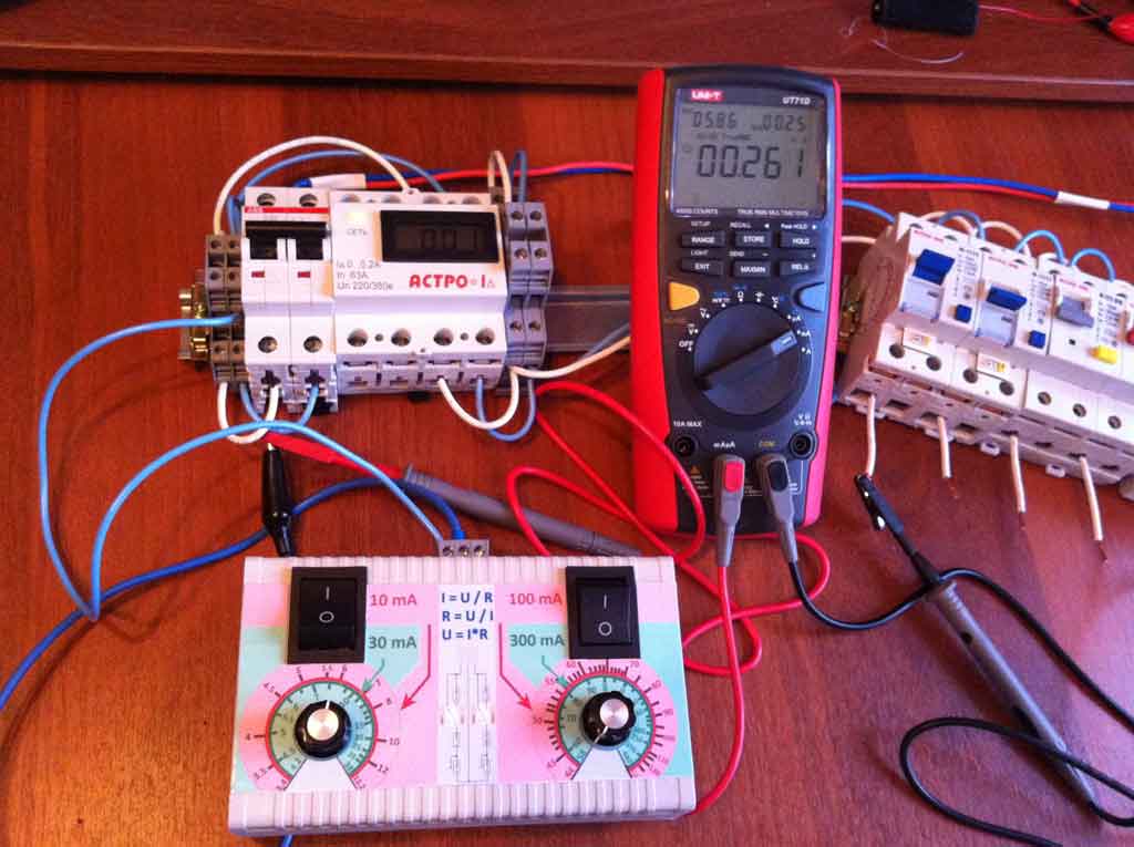 На теории все проверить – это неплохо, но использование практики всегда лучше. Поэтому можно проверить устройство на срабатывание практическим путем. Данный способ является наиболее практичным, потому что для его воплощения в жизнь надо собрать небольшую схему. К преимуществам этого способа проверки УЗО можно отнести тот факт, что получиться увидеть при какой утечке УЗО сработало на самом деле. Но есть также и минус, потому что в таком опыте отсутствует этом возможность зафиксировать время отключения.