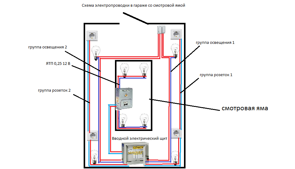 Порядок составления электрической схемы для гаража выглядит следующим образом: