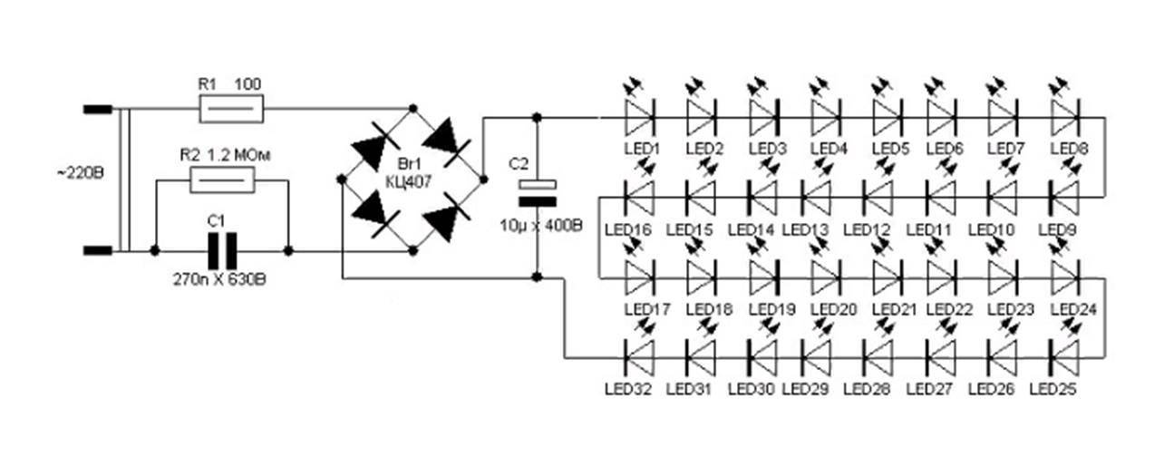 Схема китайской лампочки.