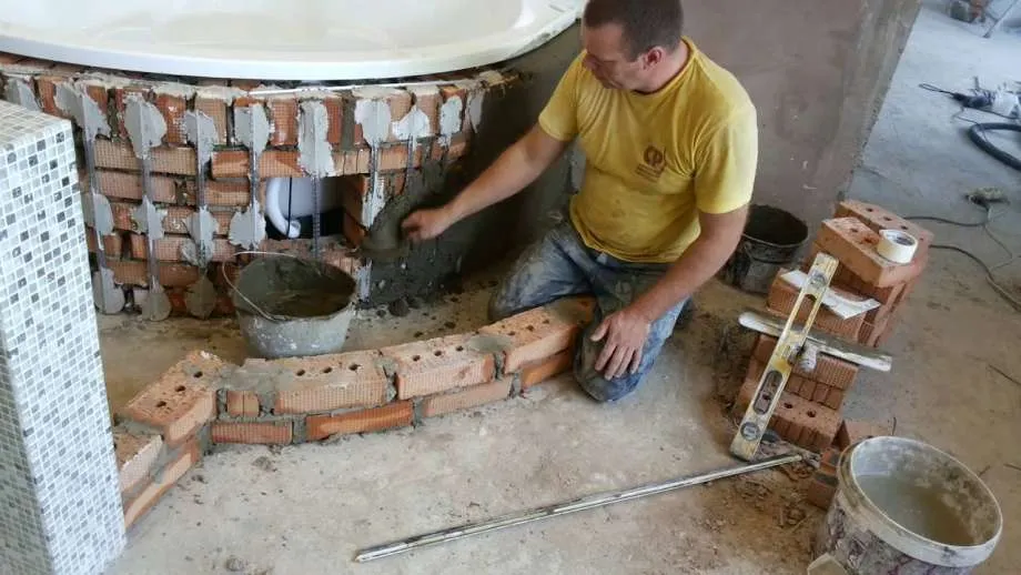 Изготовление загородки под ванну из кирпича требует опыта, времени и физических усилий