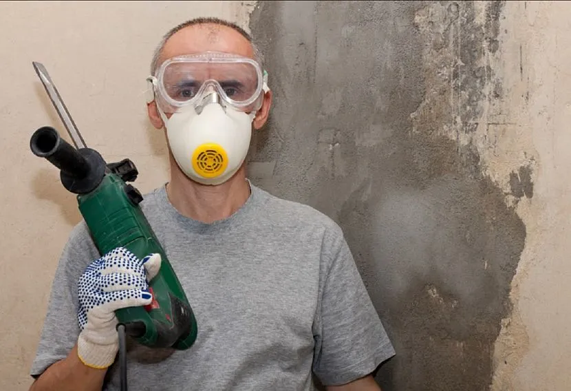При сверлении важно соблюдать технику безопасности. Во время процесса от стены отлетают куски бетона, кирпича или деревянные щепки, которые могут травмировать исполнителя. Еще вокруг образуется много мелкой пыли, вредной для глаз и органов дыхания