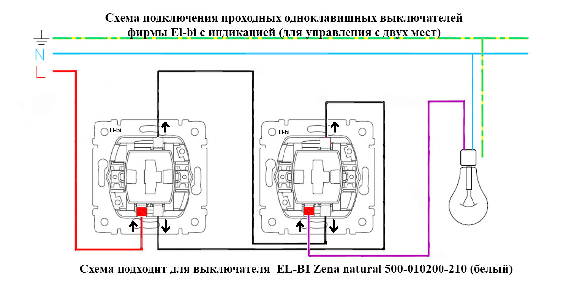 Принципиальная схема подключения проходного выключателя с 2-х мест