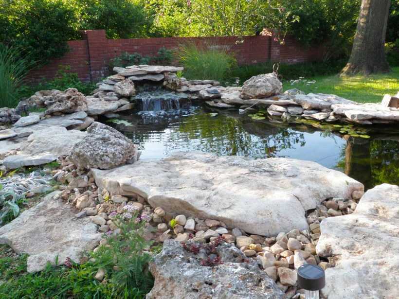- Завершающим этапом строительства является творческий процесс декорирования водоема. Вариантов этого множество, можно запустить в пруд наиболее приспособленных для такого содержания рыб: неприхотливых карпов и карасей, а можно украсить прибрежную полосу водоема растениями и камнями. Для этих целей можно приобрести природный камень, который рознично и оптом реализуют строительные магазины.