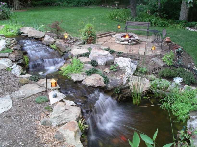 Если местность холмистая, то на ней лучше обустроить ручей или фонтан с каскадным стеканием воды, а оформить плоский кусок земли лучше небольшим прудиком. Также следует учитывать расположение деревьев относительно водоема. Со временем корни могут нарушить целостность водоема. Помимо этого в воду с деревьев будут сыпаться листья и прочий мусор, благодаря чему придется чаще заниматься очисткой пруда.