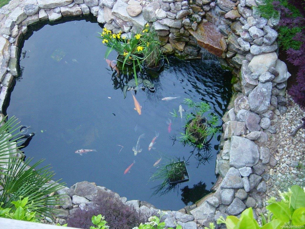 После создания прудика вы можете запустить туда рыбок. Но тогда глубина вашего искусственного водоема должна быть не менее метра, чтобы зимой рыбки не замерзли.