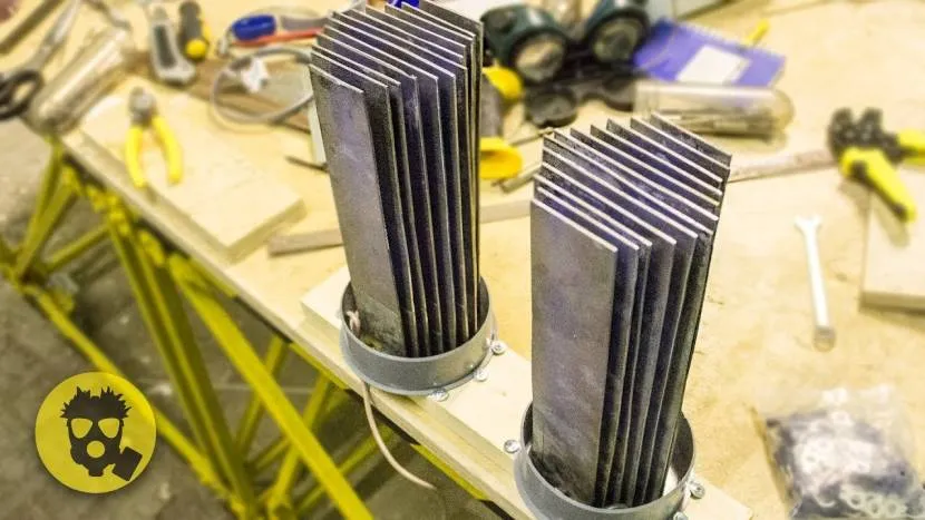 Очевидно, что производительность установки будет возрастать с увеличением площади контакта между водой и электродами. По этой причине последние выполняют в виде пластин. Они собираются в конструкции, напоминающие стальные ребристые радиаторы отопления.