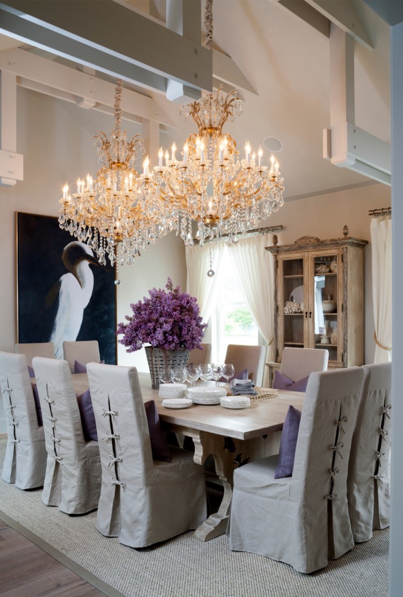 Люстры из хрусталя обладают особой торжественностью и красотой. Роскошное сверкание придает таким изделиям весьма эффектный вид, особенно, если это разноцветный хрусталь. Как правило, они имеют внушительные габариты и большой вес, поэтому используются в просторных помещениях.